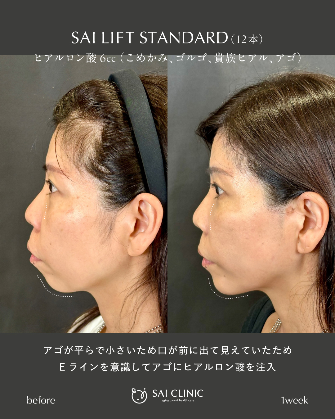 また、鼻に高さを出す糸リフト「SAI LIFT NOSE」で鼻先が高くなって鷲鼻が目立たなくなり、横顔がとても綺麗に整いました。