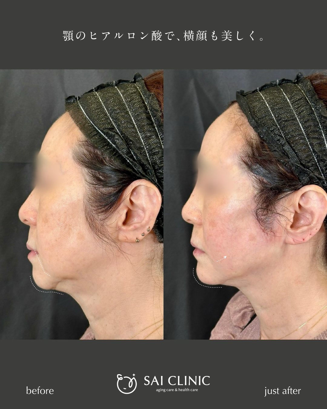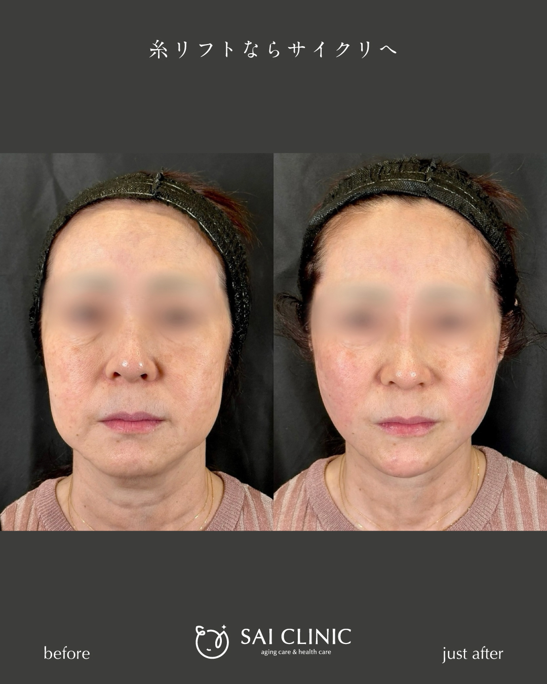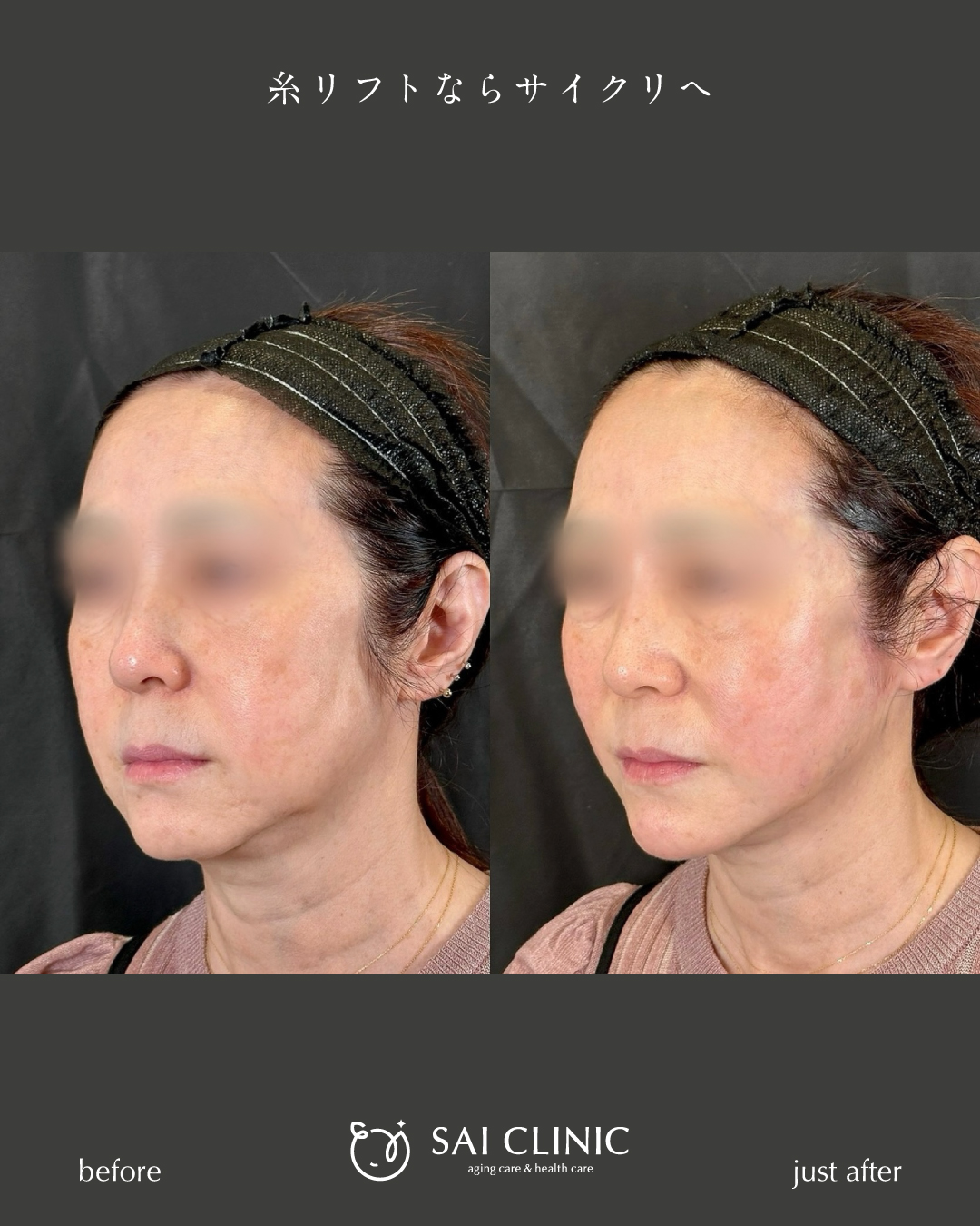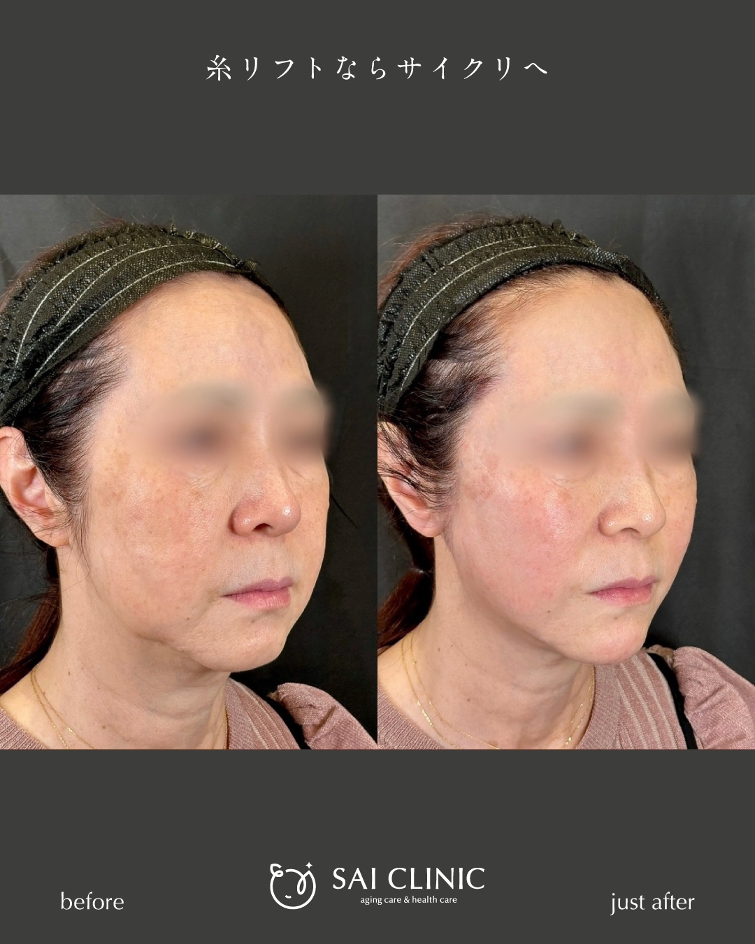 口横のたるみを元の位置まで引きあげる事で、フェイスラインの膨らみもシュッと改善し、長くなった輪郭も理想的な卵型に近づきます。