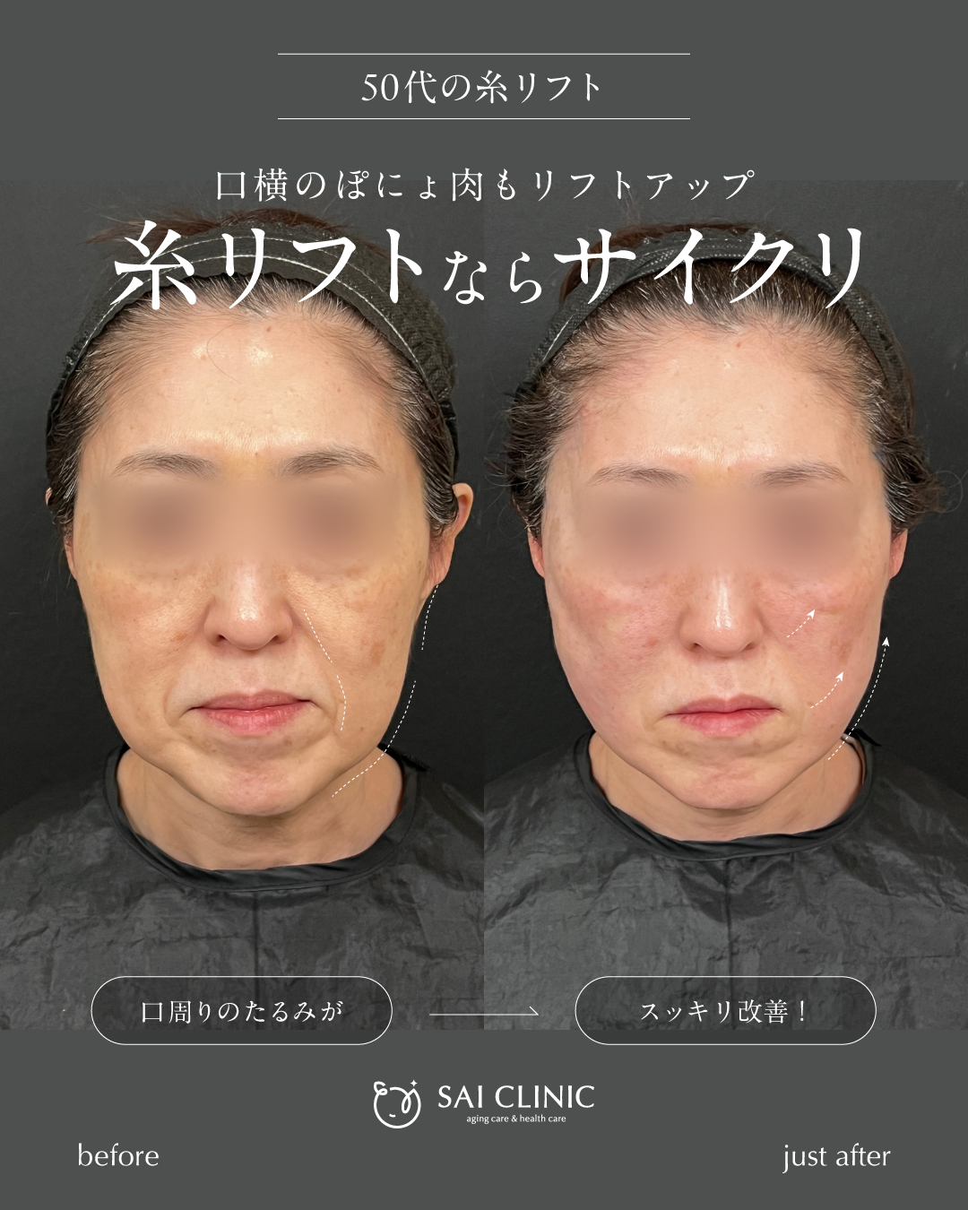 - [糸リフト]溶ける糸を顔に挿入したるみを引き上げ、コラーゲンを産生し肌質を改善する施術です。