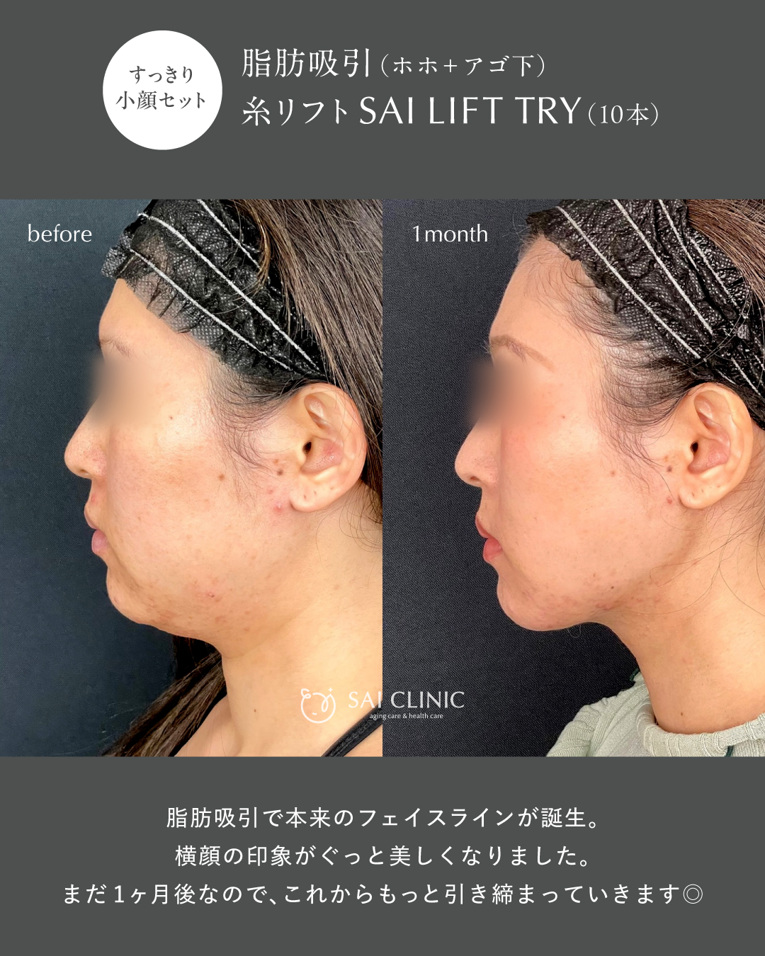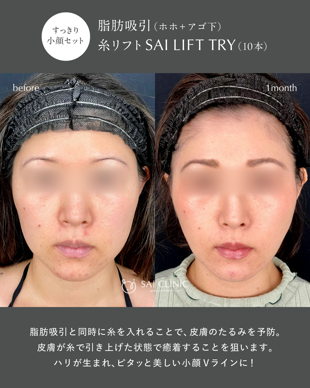 施術名 脂肪吸引(ホホ+アゴ下)+糸リフト SAI LIFT TRY(10本)